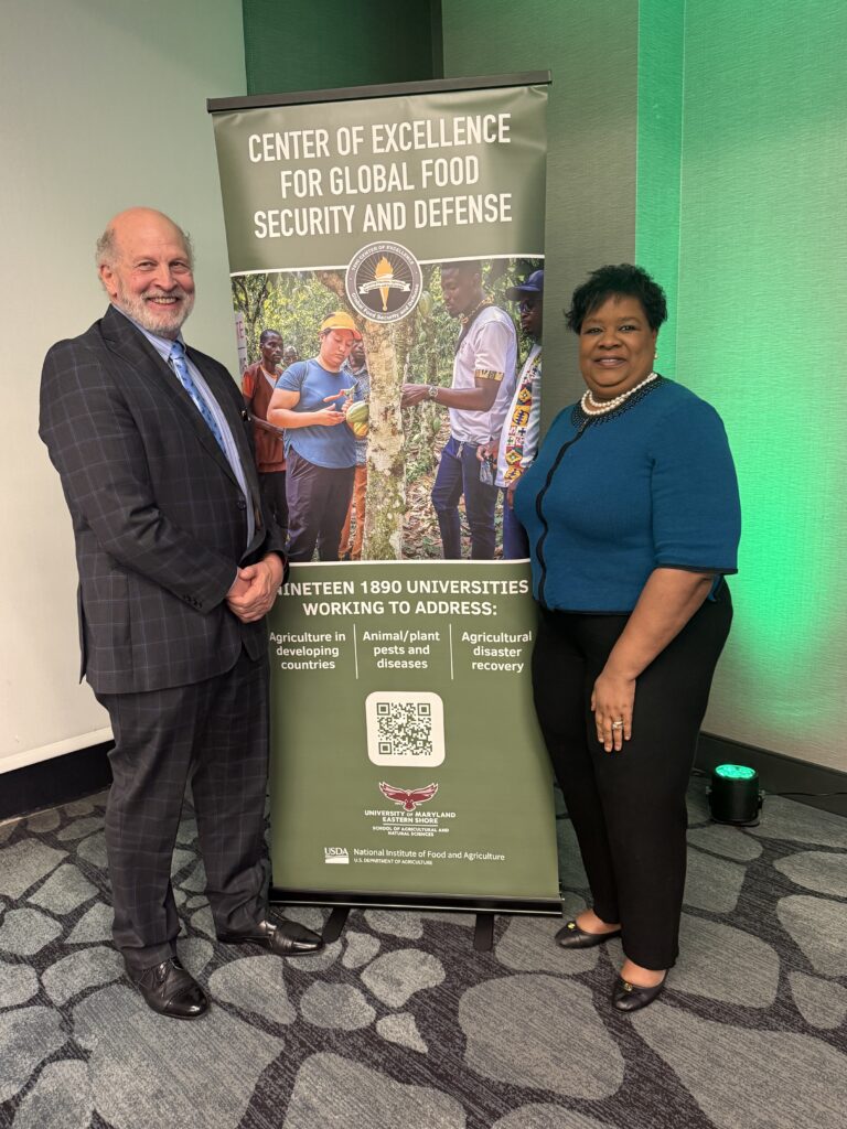 Prof. James F Oehmke and Dr. Felecia M Nave, President and CEO of the 1890 Universities Foundation, at the Annual Meeting of the Center of Excellence for Global Food Security and Defense (CEGFSD). The CEGFSD leverages the collective capacity of all nineteen 1890 land-grant universities across 18 states to carry out work that supports U.S. national priorities by building strong food systems and securing America’s leadership in global agriculture. The Center is one of six identified in the 2018 Farm Bill and is supported by funds from the U.S. Department of Agriculture. Prof. Oehmke serves as a member of the CEGFSD Advisory Board.